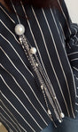 O piesă versatilă, ce transformă clasicul într-un gest contemporan, situată între bijuterie și statement vestimentar — purtată pe o cămașă, sacou sau rochie, sau chiar in par, adaugă acea notă de contrast subtil și elegant care definește modernitatea Tria Alfa.