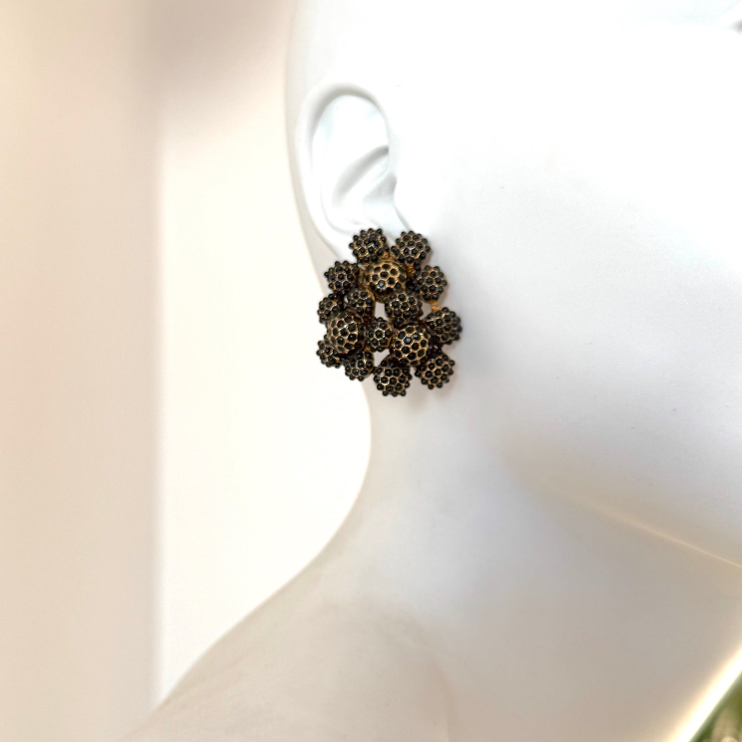 Cerceii Helia reinterpretează forma florală într-un design sculptural, acoperit cu aur antichizat, unde reflexele calde și textura organică se întâlnesc într-o expresie de feminitate rafinată dar opulenta.