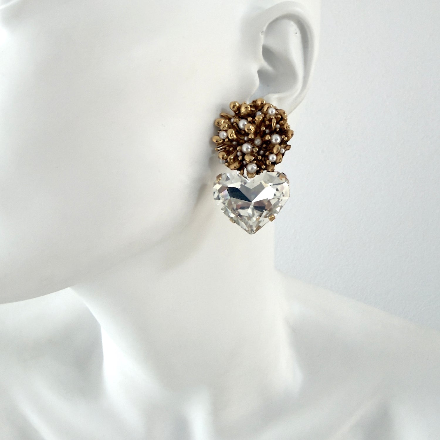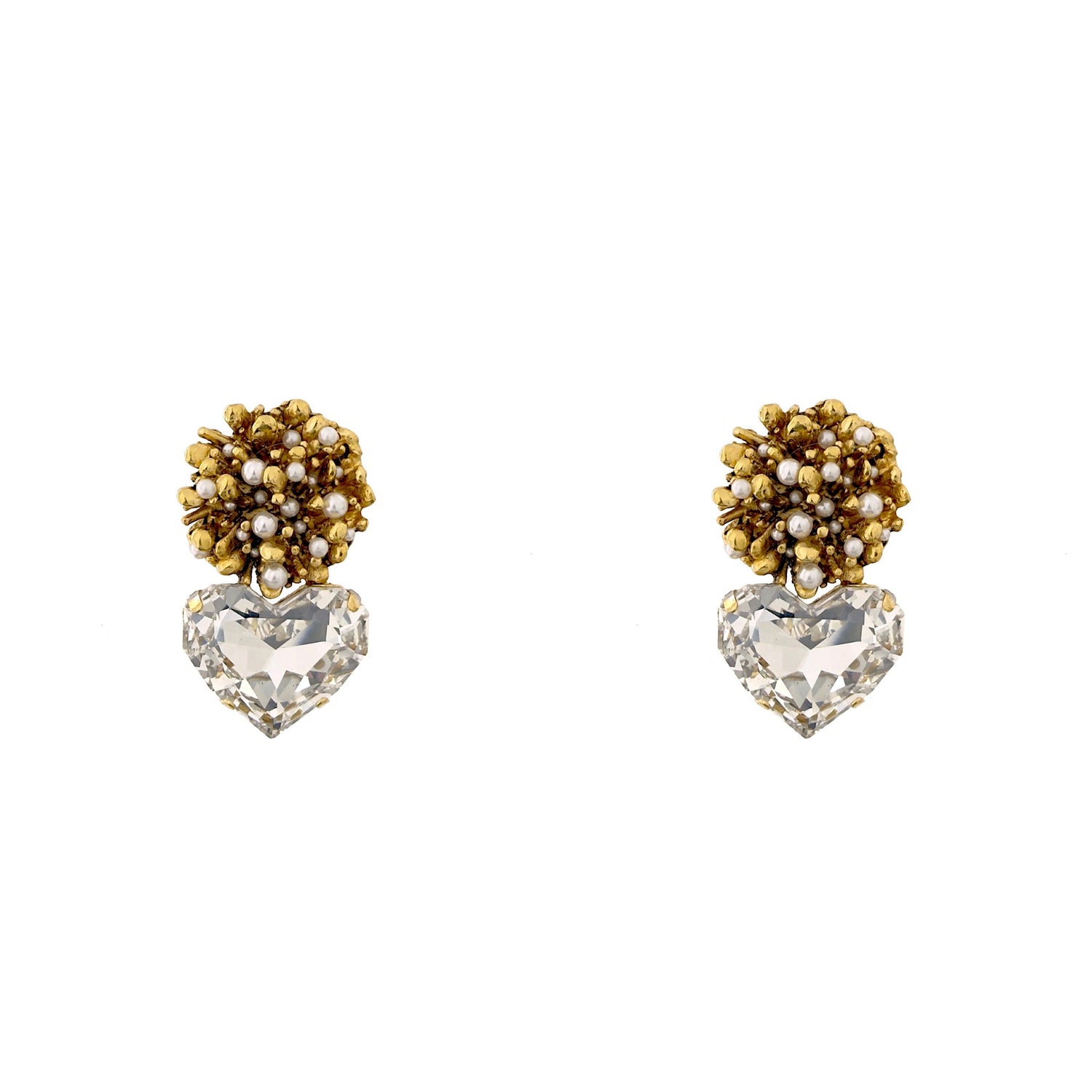 Modelul combina elementul decorativ Anemone, presarat cu mici perle si accente aurii, cu o inima mare din cristal transparent. Contrastul dintre textura organica si claritatea cristalului creeaza o prezenta luminoasa si expresiva, surprinzator de usor de integrat in styling.