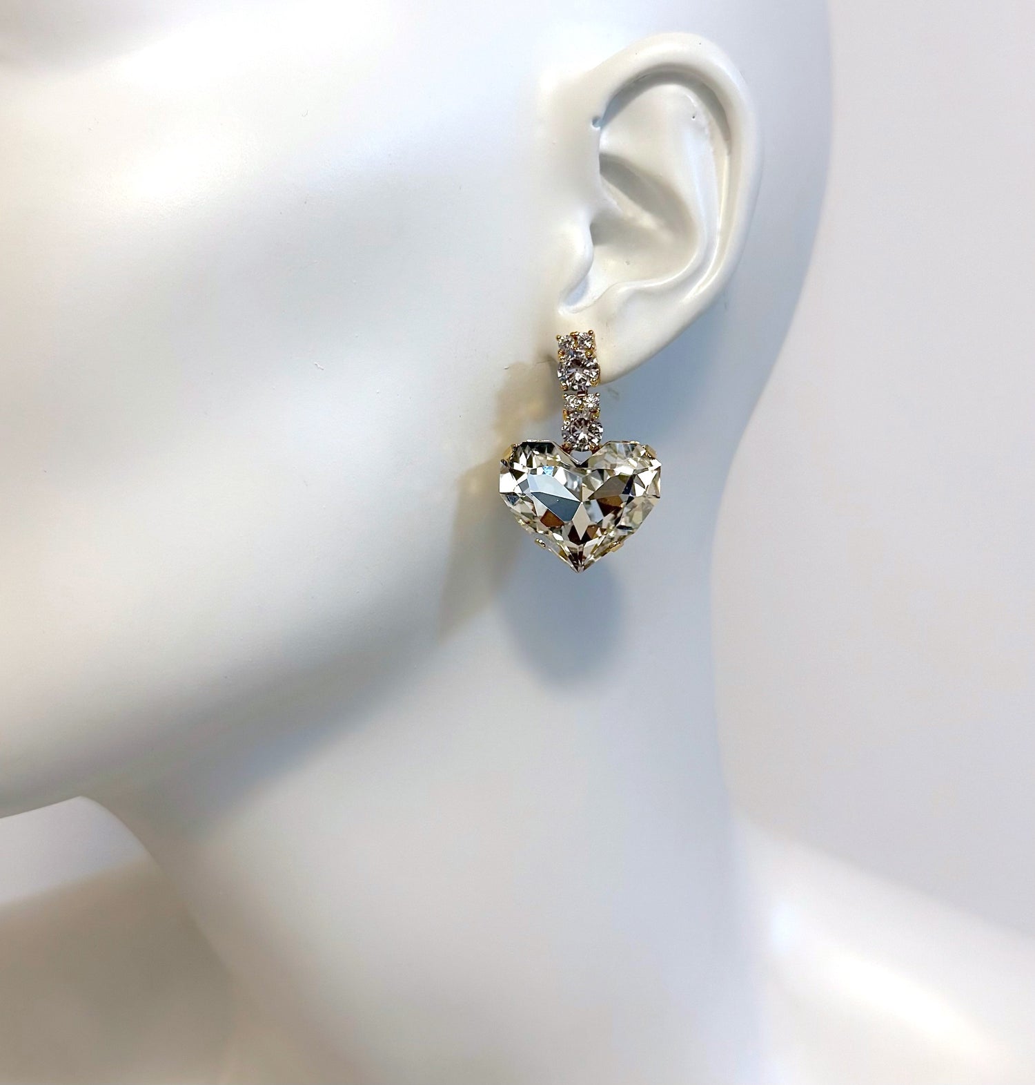 Cerceii Amina Heart au o linie clara: o tija fina cu cristale si o inima fatetata care ramane conturul principal. Forma lor verticala completeaza chokerul printr-un contrast simplu de directii, creand un set modern, cu reflexe curate si estetica minimalista.
