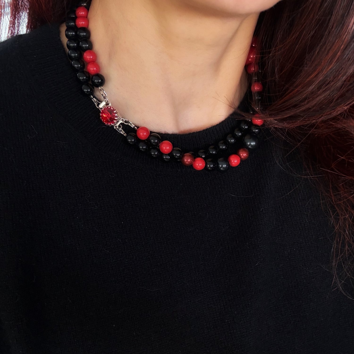 Materiale: Pearls by Swarovski* colorate rosu si negru